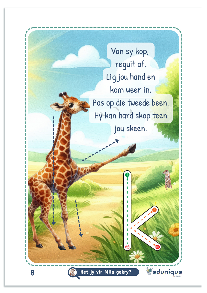113 bladsye propvol prettige aktiwiteite, vrolike liedjies, kleurvolle plakkers en boeiende luisterstories. Gebruik die QR-kodes om toegang te kry tot interaktiewe YouTube-video's vir ‘n nog ryker leerervaring! Elke boek word per kurrikulum oor ‘n kwartaal behandel, vir ‘n gestruktureerde en doelgerigte leerervaring.